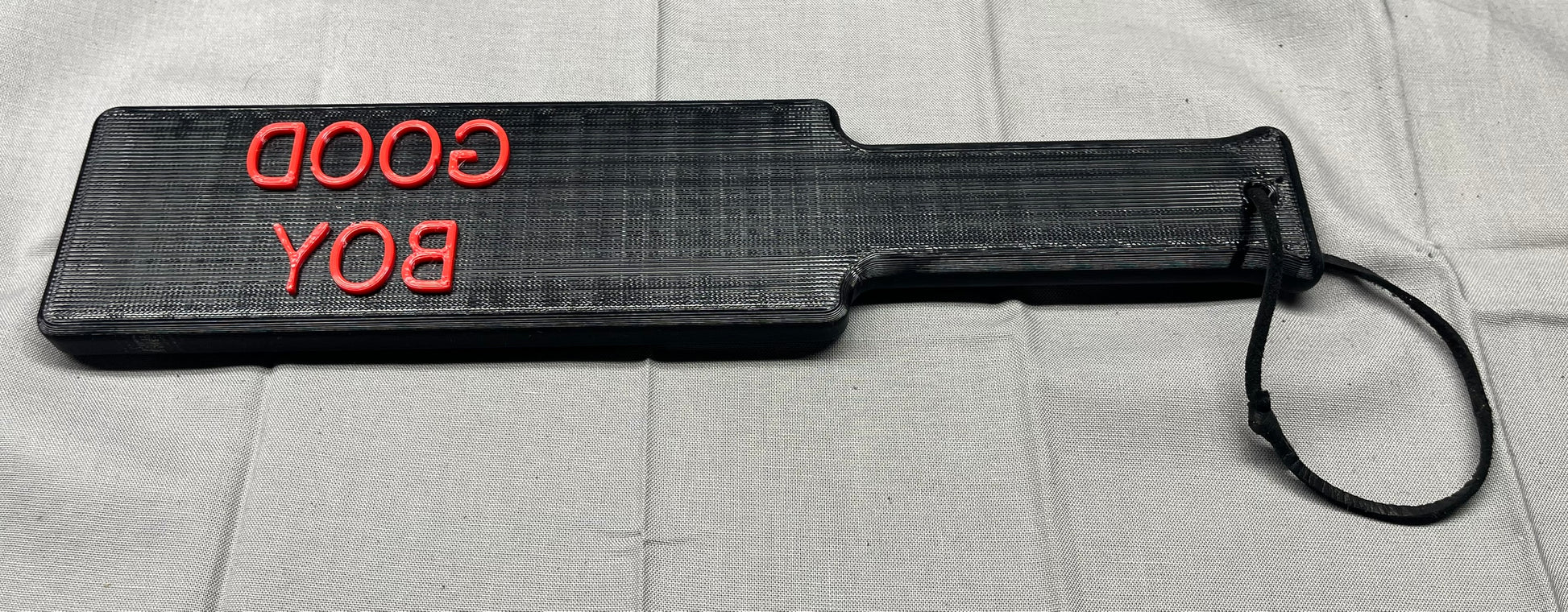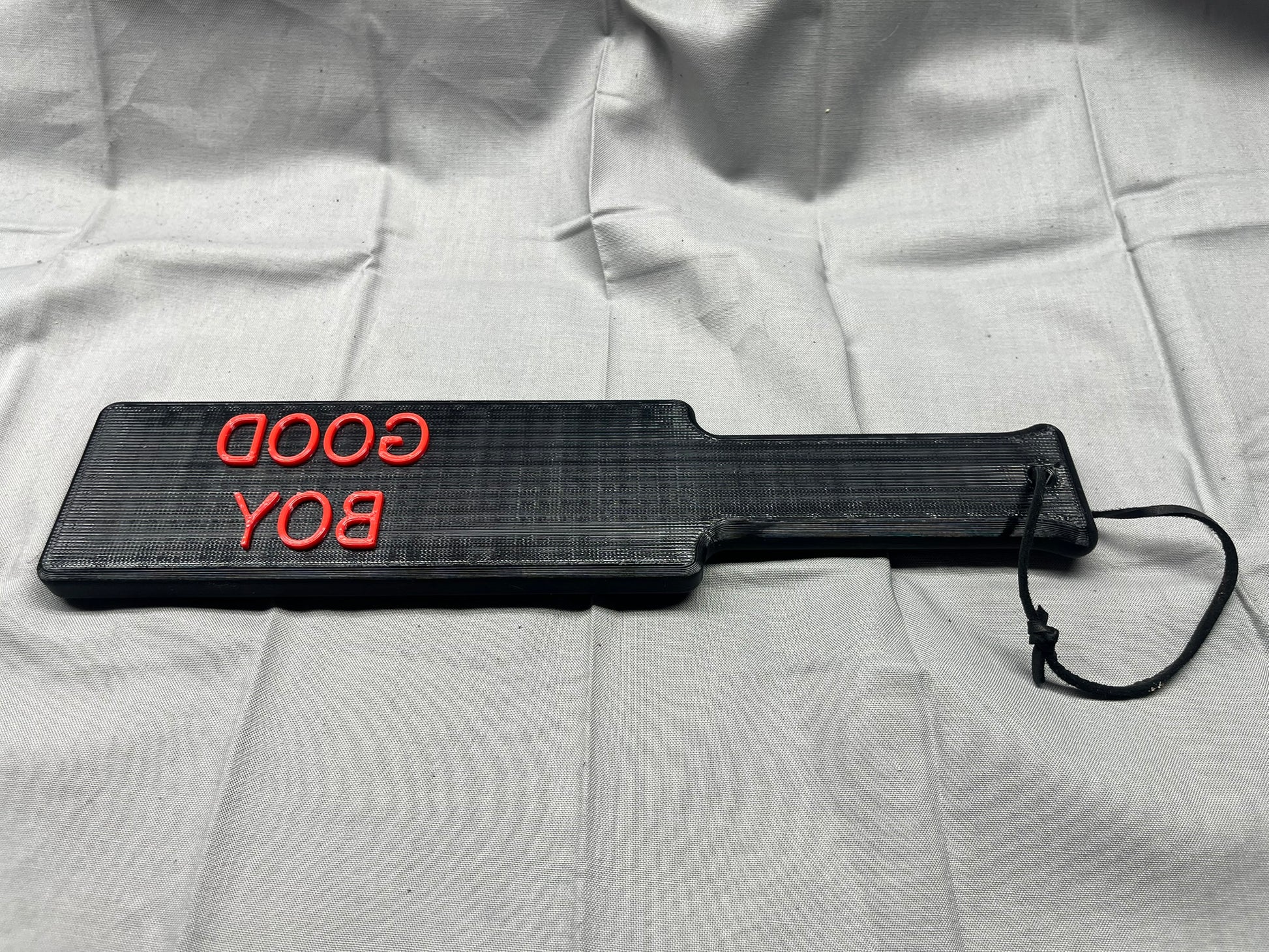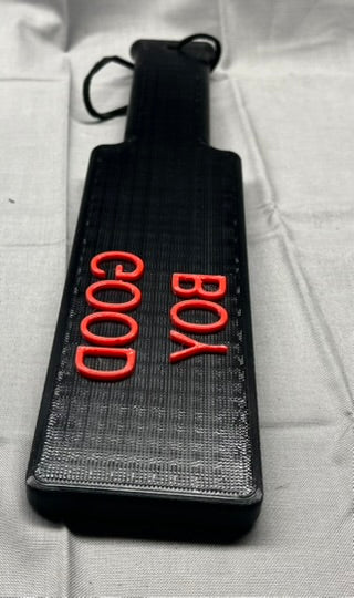 This BDSM Paddle is great for leaving an imprint of the word GOOD BOY on your submissive, friend, or partner.