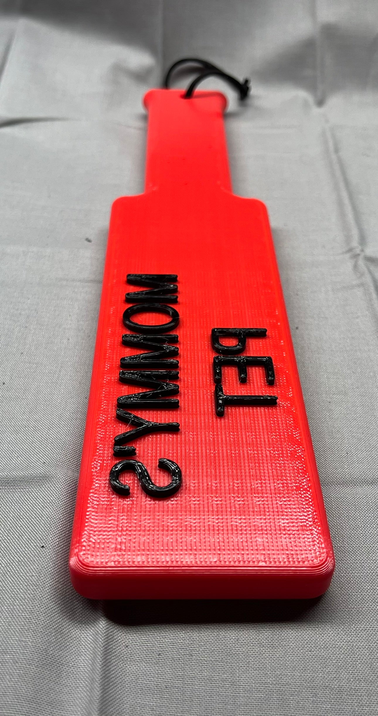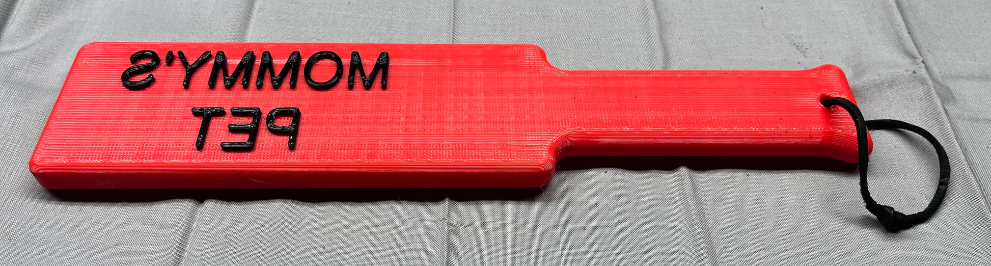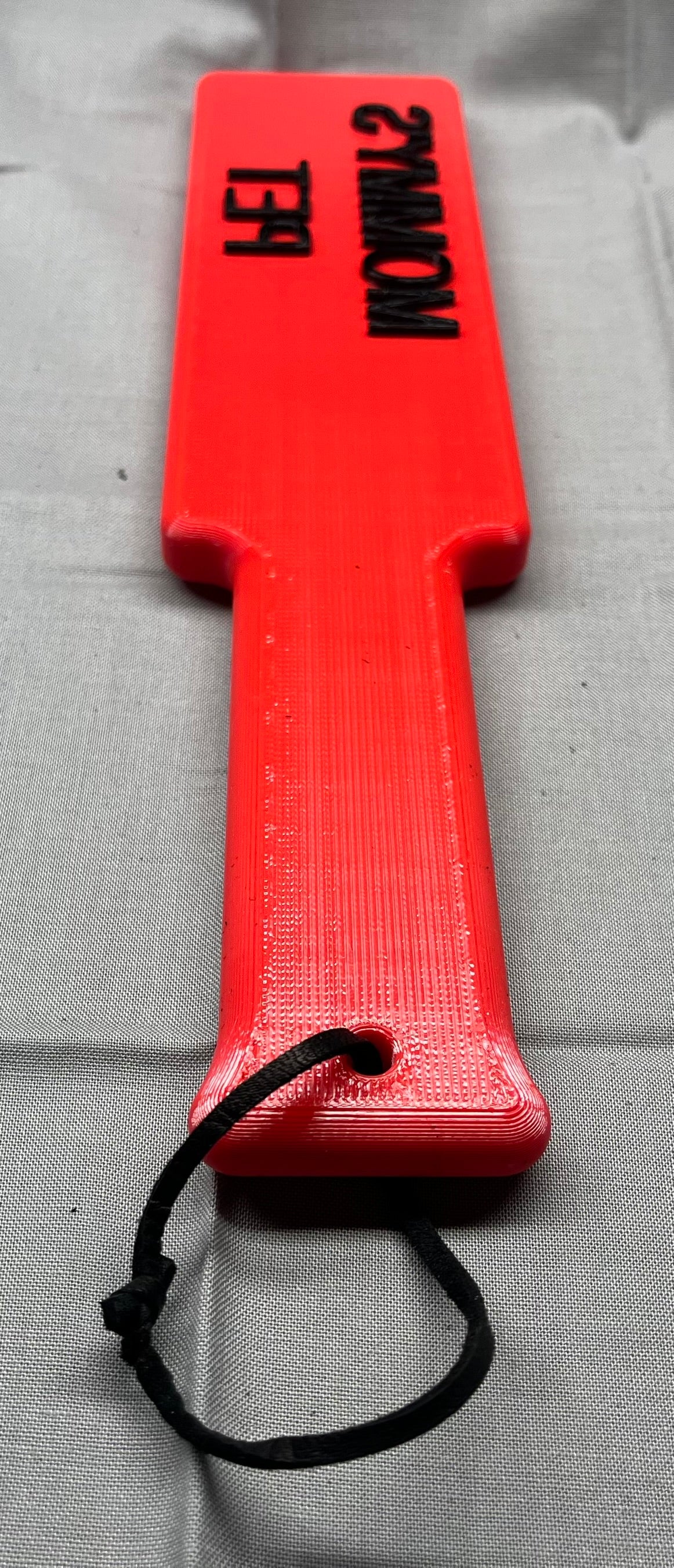 This BDSM Paddle is great for leaving an imprint of the word MOMMY'S PET on your submissive, friend, or partner.