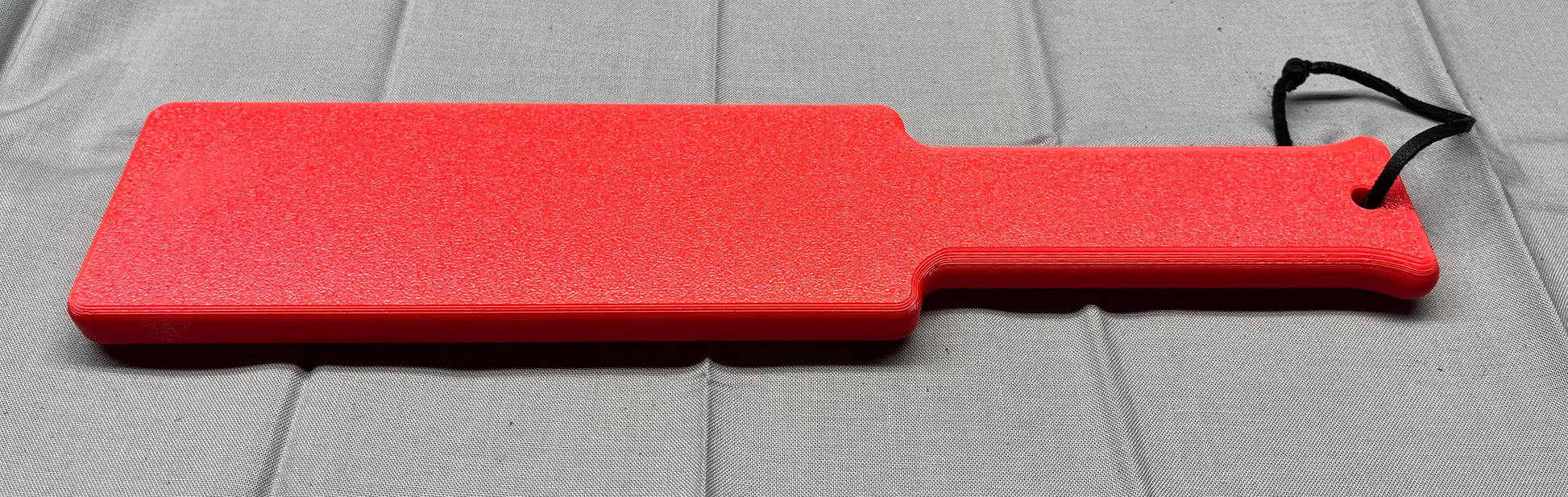 The letter's are mirrored and offset so that after your sub has been spanked, the word(s) are legible to you! The word(s) will be legible when you hold the paddle in your right hand and swing it like a tennis racket forehand style.