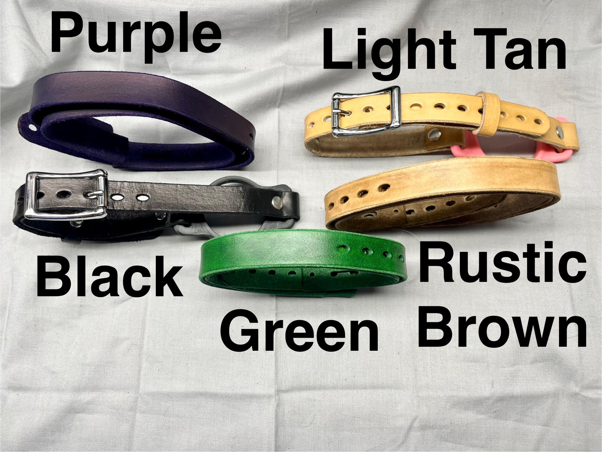 It's made with PLA (plastic) that was 3D printed, a vegetable tanned cow leather strap that was cut, stamped and dyed by hand in your choice of colors below.